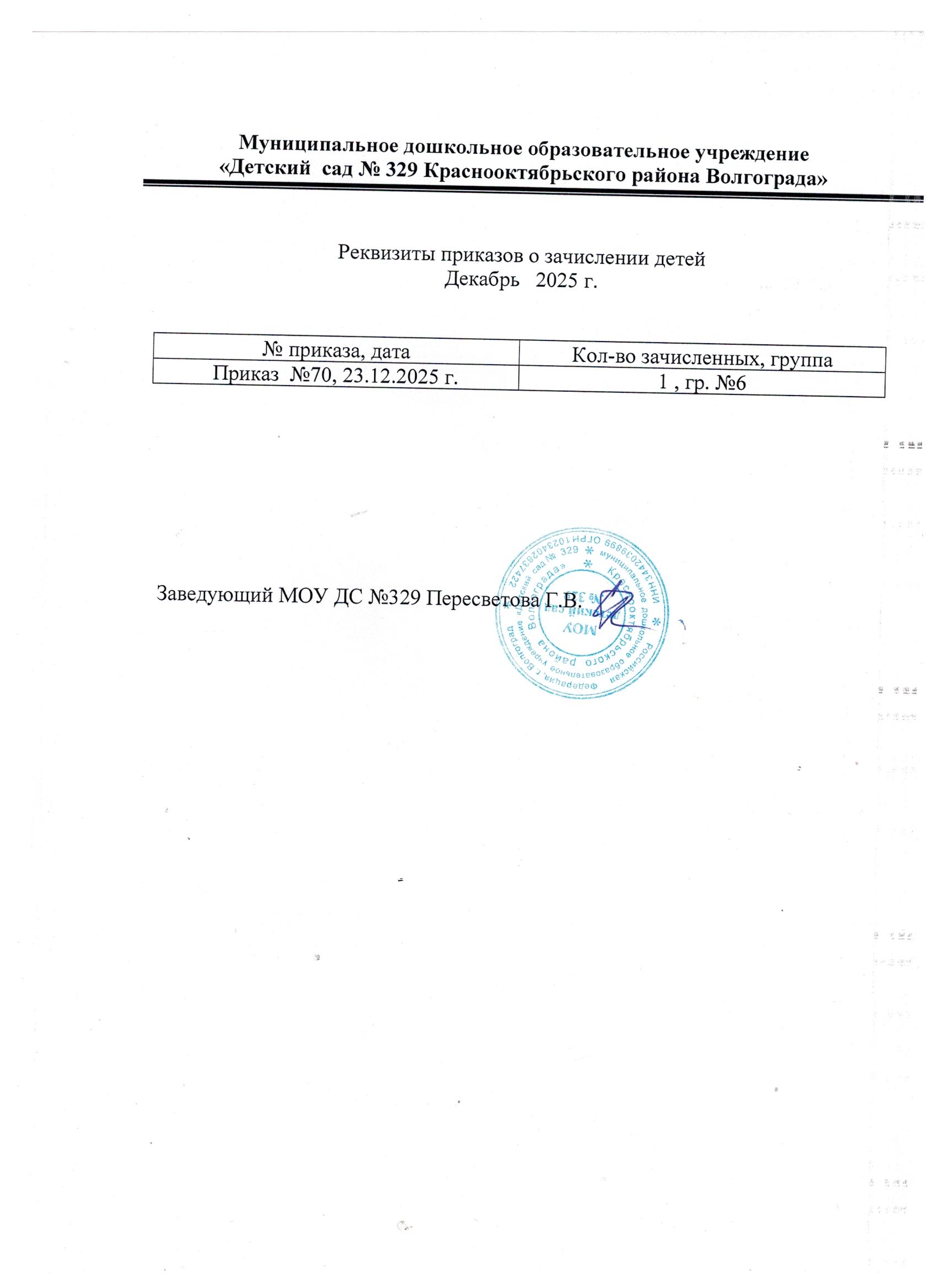 Приказ "Об утверждении порядка комплектования МОУ Волгограда " № 275 от 31.03.2025